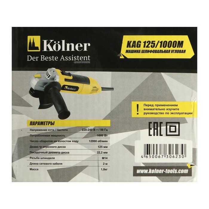 Угловая шлифмашина Kolner KAG 125/1000M, 1000 Вт, 12000 об/мин, 125х22.2 мм, М14