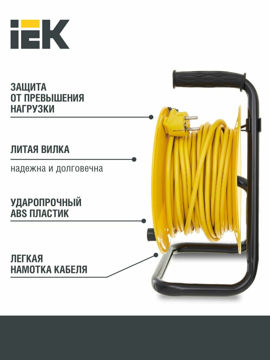 Удлинитель на катушке IEK Industrial УК20, 4 розетки, с т/з, с заземлением, 3 x 1 мм², 20 м