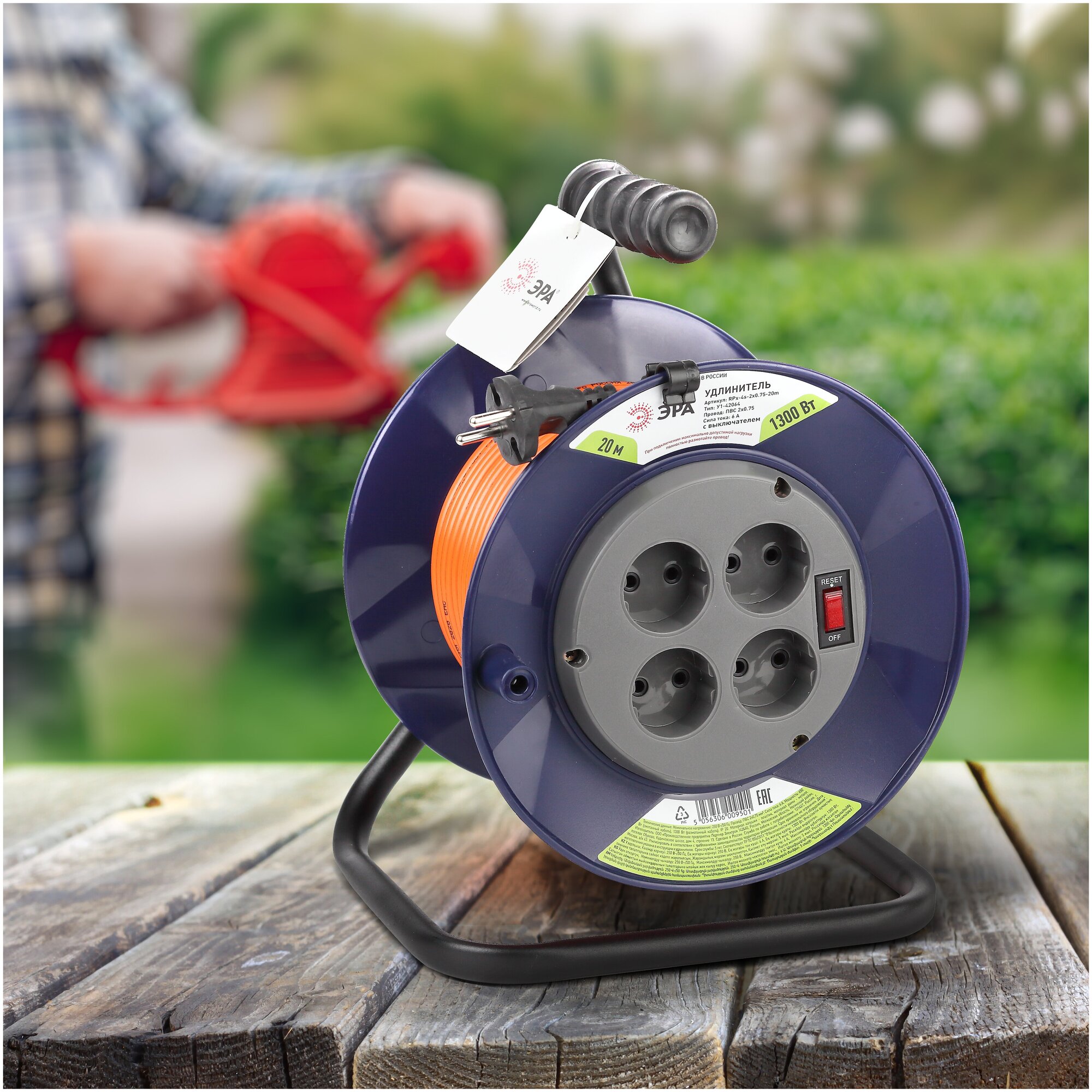 Удлинитель строительный силовой Эра RPx-4es-3х0.75-30m на катушке с заземлением и выключателем 30 метров 4 розетки 6А