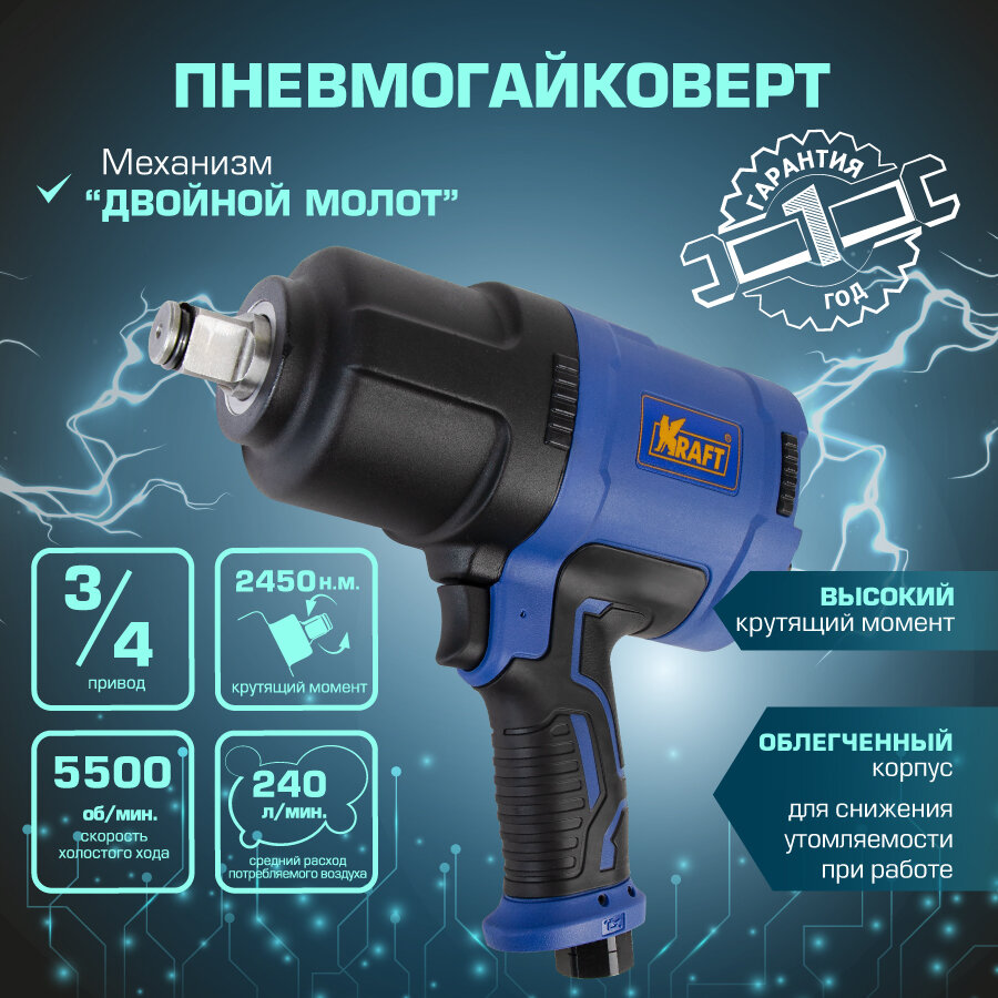 Пневматический ударный гайковерт Kraft, 3/4 дюйма, 2,450 Нм