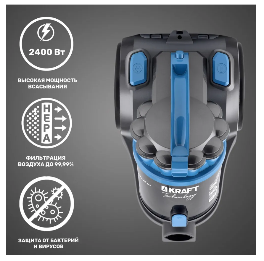Пылесос Kraft TCH-KVC 163 F 2000/350 Вт, контейнер 2 л, черный/синий