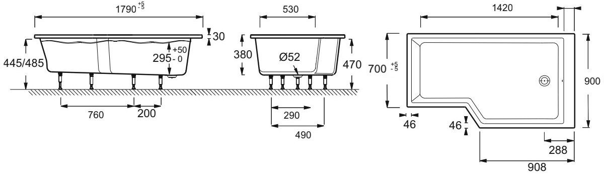 Ванна акриловая Jacob Delafon Bain Douche Neo 180х90 левая E6D004L-00 с ножками