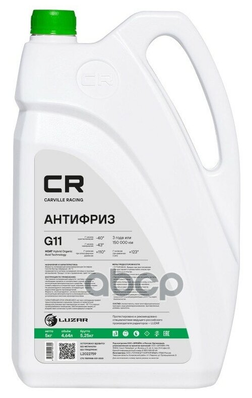 Антифриз, Готовый Раствор Cr G11 Hoat -40°с, Зеленый, 5кг/4.67л Carville Racing арт. L2022759