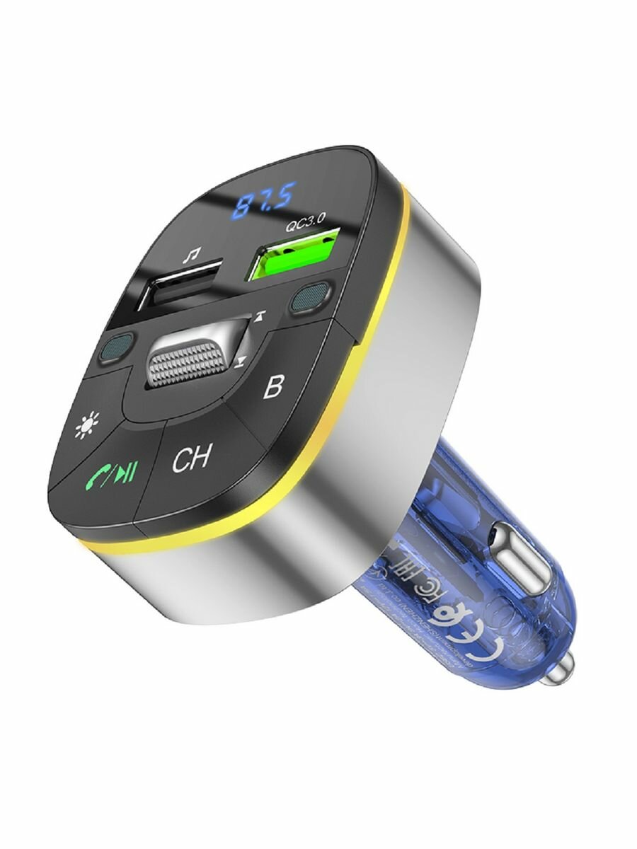 Орбита / TS-CAF120 FM-трансмиттер с bluetooth/микрофоном/ для автомобиля/ зарядник QC 3.0 для авто в прикуриватель