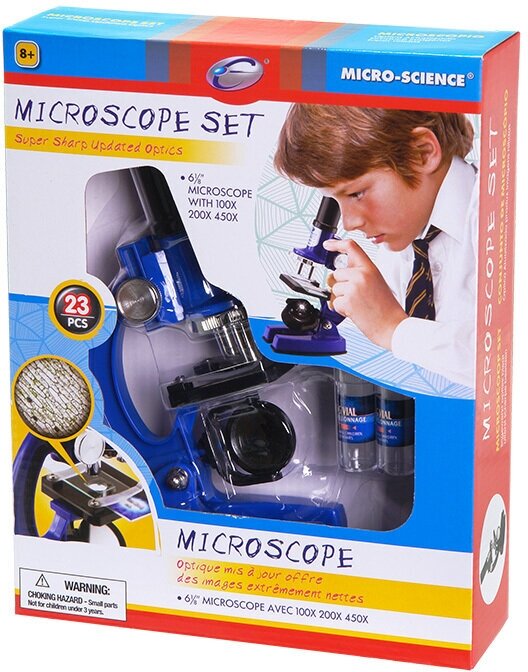 Купить Микроскоп c аксессуарами увеличение 100х200х450х, 23 предмета, синий, металл, пластмасса