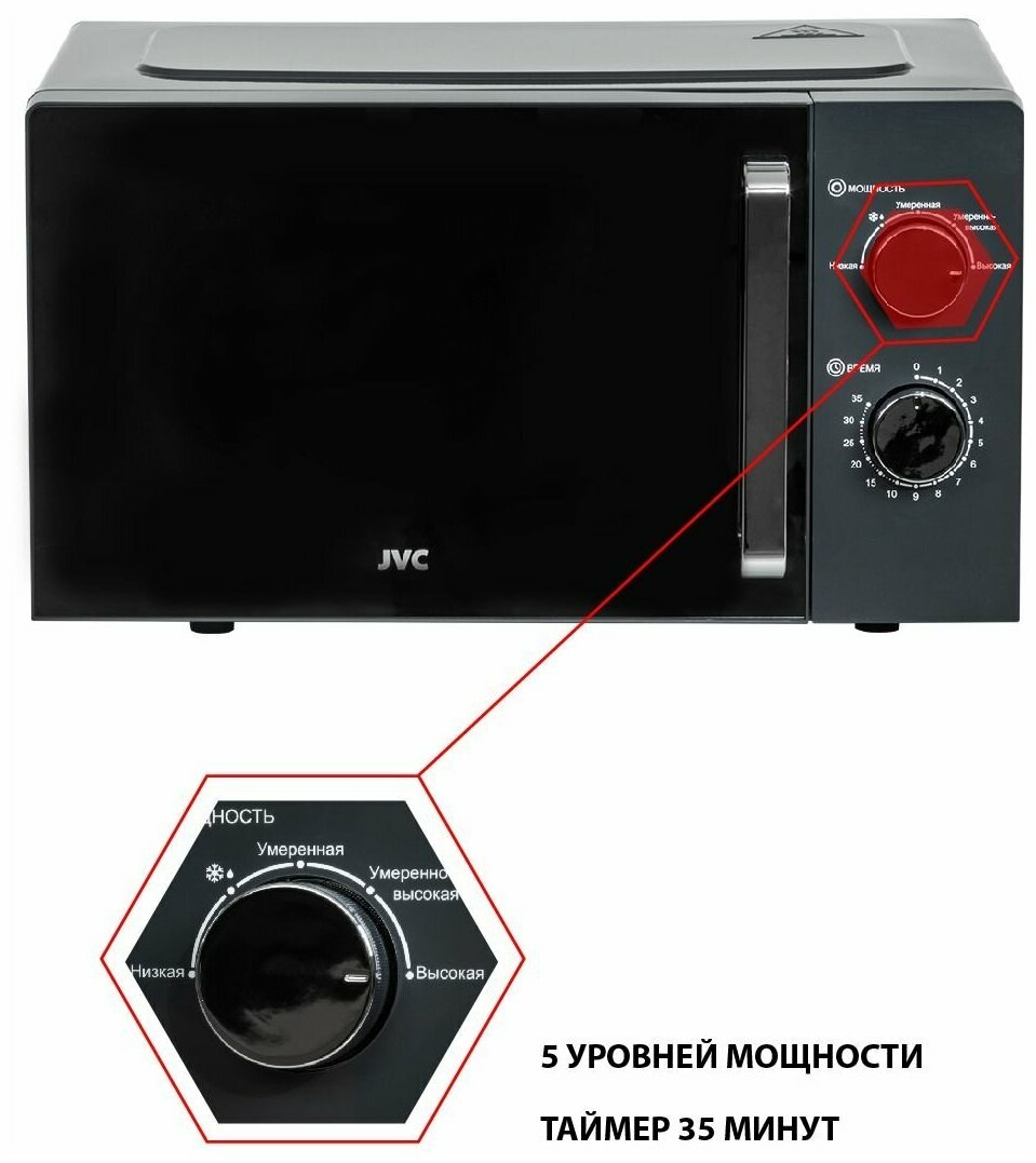 Микроволновая печь JVC 20 л с таймером на 35 минут, 5 уровней мощности, авторазмораживание, 700 Вт