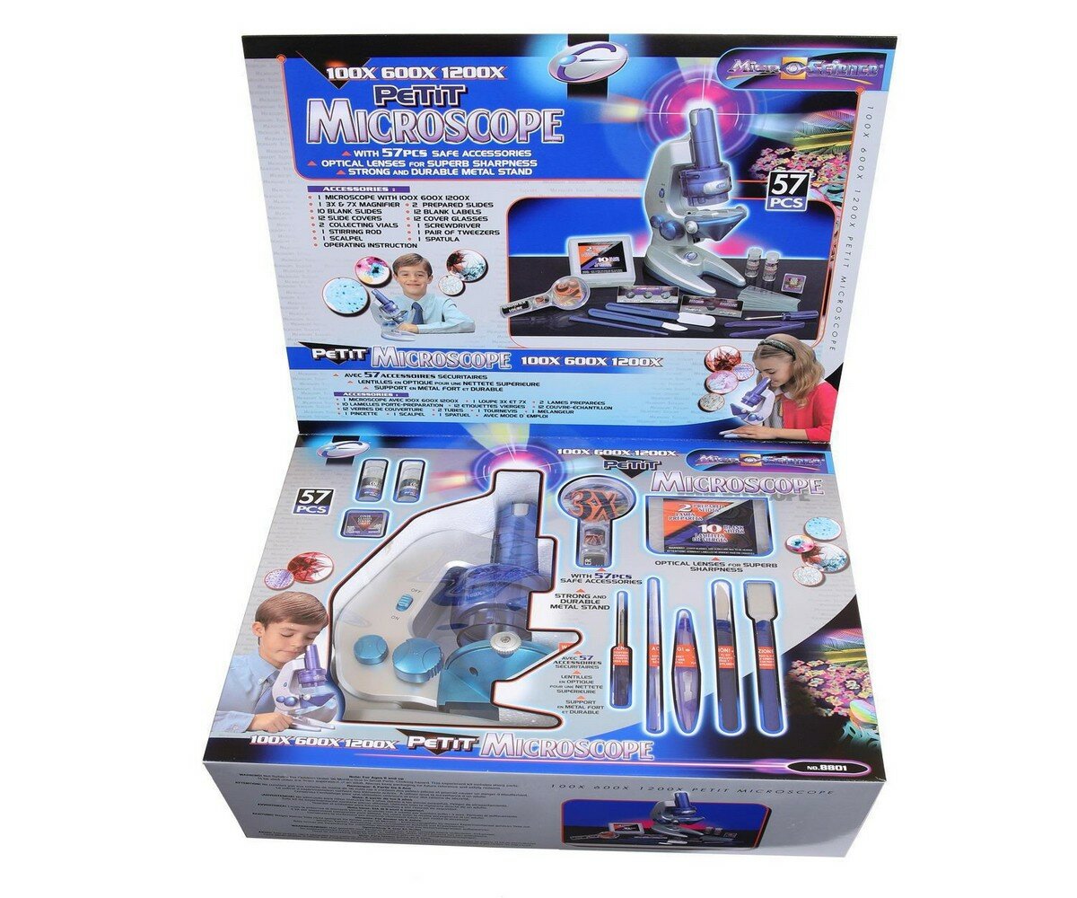 Микроскоп с увеличением х1200, с аксессуарами. 57 предметов в подарочной коробке 8801