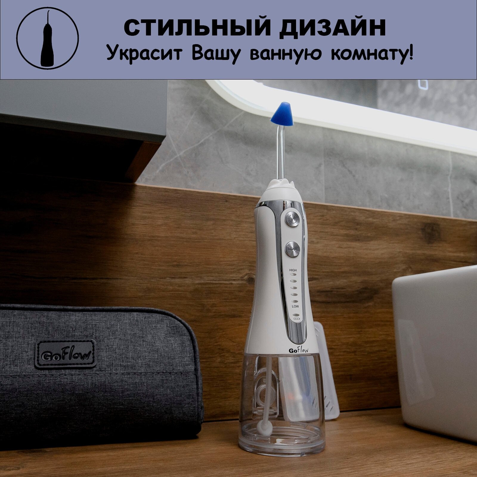 Ирригатор портативный GoFlow F100 Premium c широчайшим диапазоном 20-970кПа, 9-насадок в т.ч. 2 низкого давления,5-режимов,300мл, премиальная гарантия интересное: