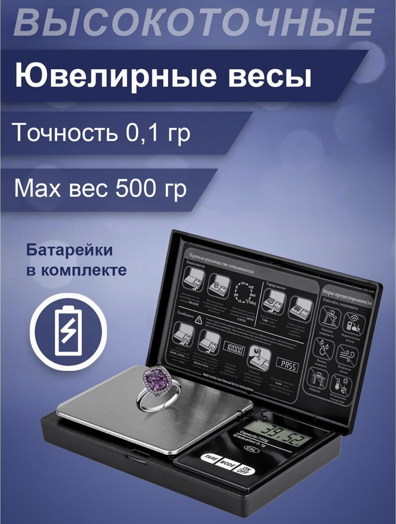 Весы ювелирные / Электронные карманные/ 500 гр./0.01 гр./ В комплекте батарейки.