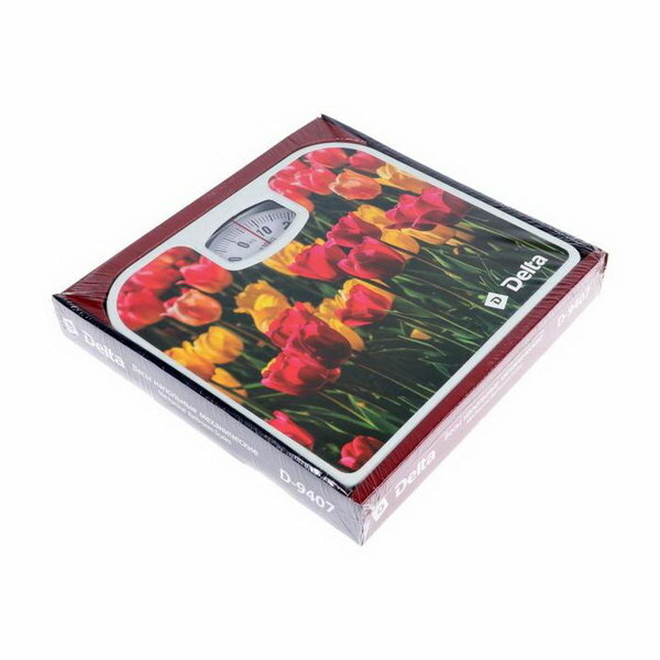 Весы напольные DELTA D-9407, механические, до 130 кг, картинка "Тюльпаны"