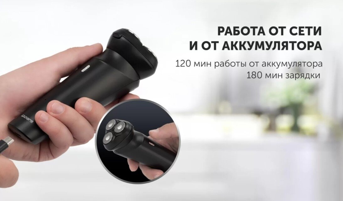 Бритва роторная Polaris PMR 0411RC ProLong 4D Li+ реж.эл.:3 питан.:элек.сеть/аккум. черный PMR 0411R интересное: