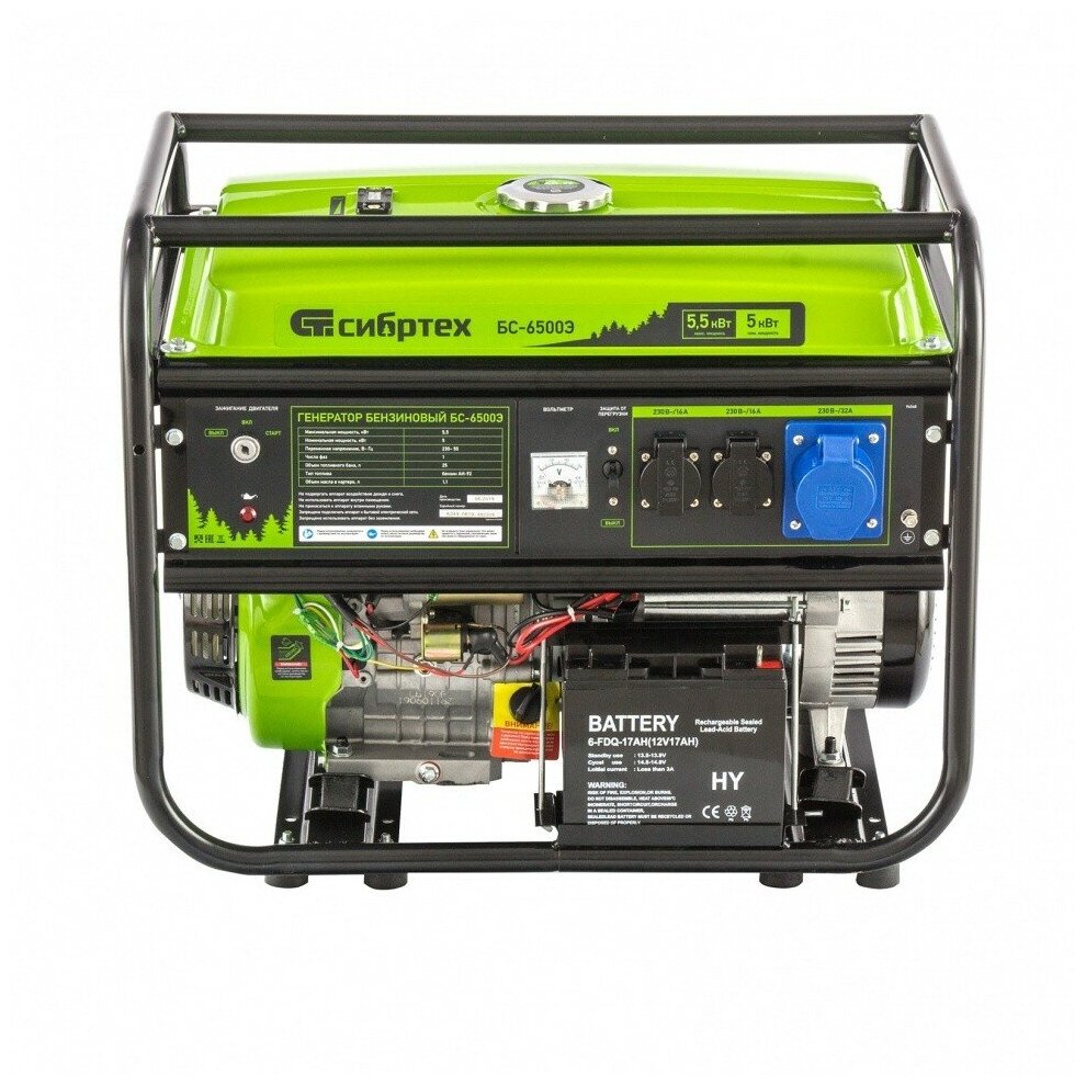 СохранитьГенератор бензиновый БС-6500Э, 5,5 кВт, 230В, четырехтактный, 25 л, электростартер СибрТех [94548] интересное: