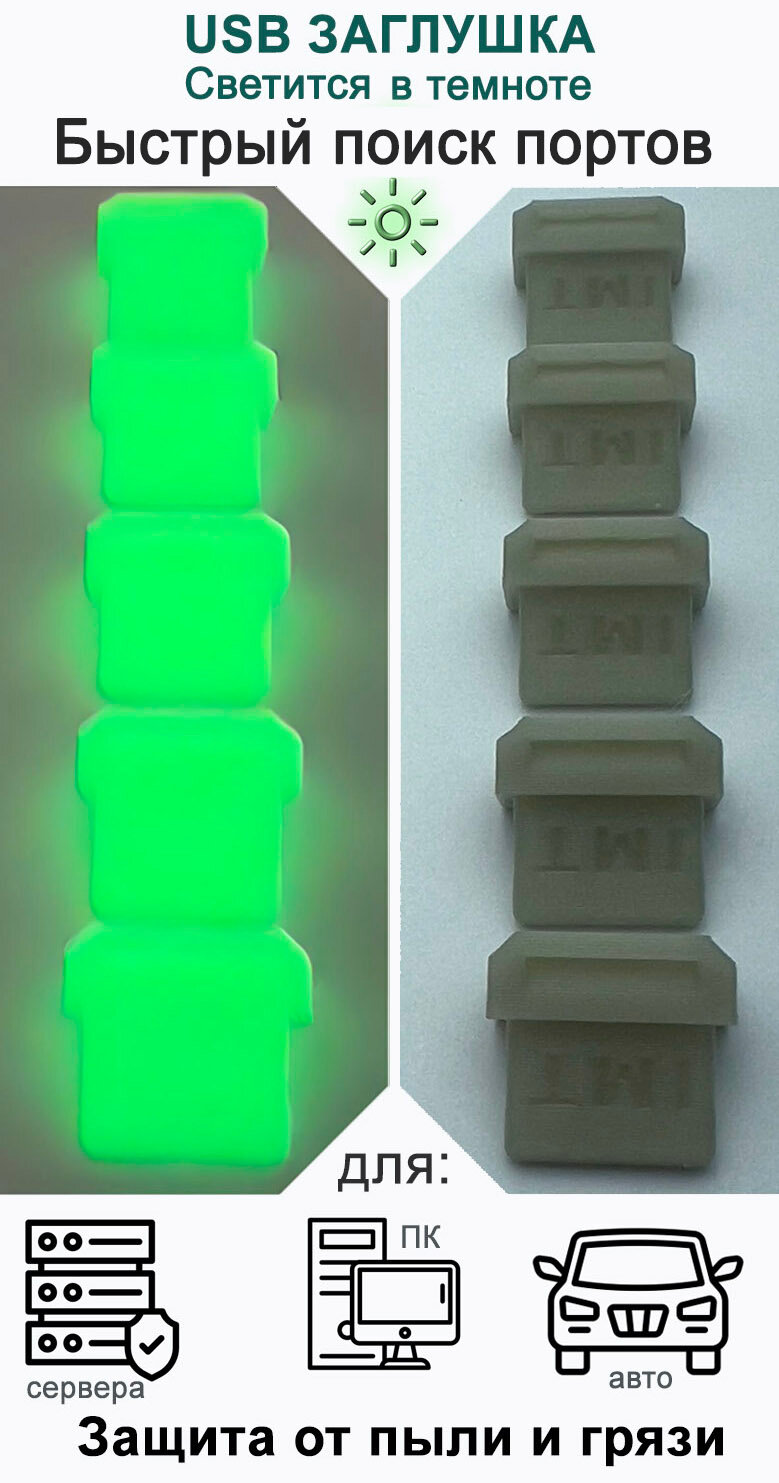 Заглушка порта USB (упак. 10шт) люминесцентная (светится в темноте) интересное: