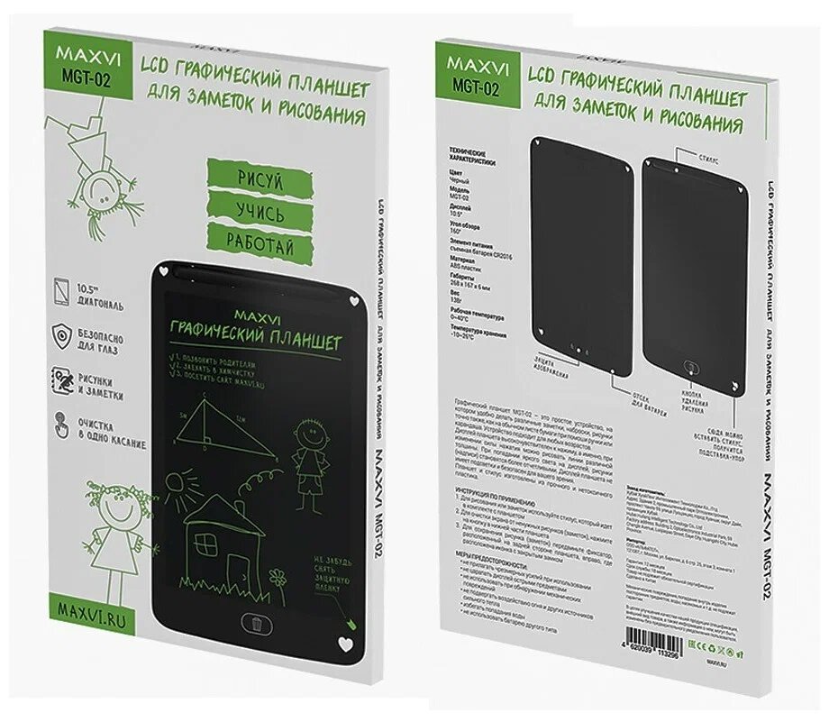 Графический планшет Maxvi MGT-01 black, LCD планшет для заметок и рисования