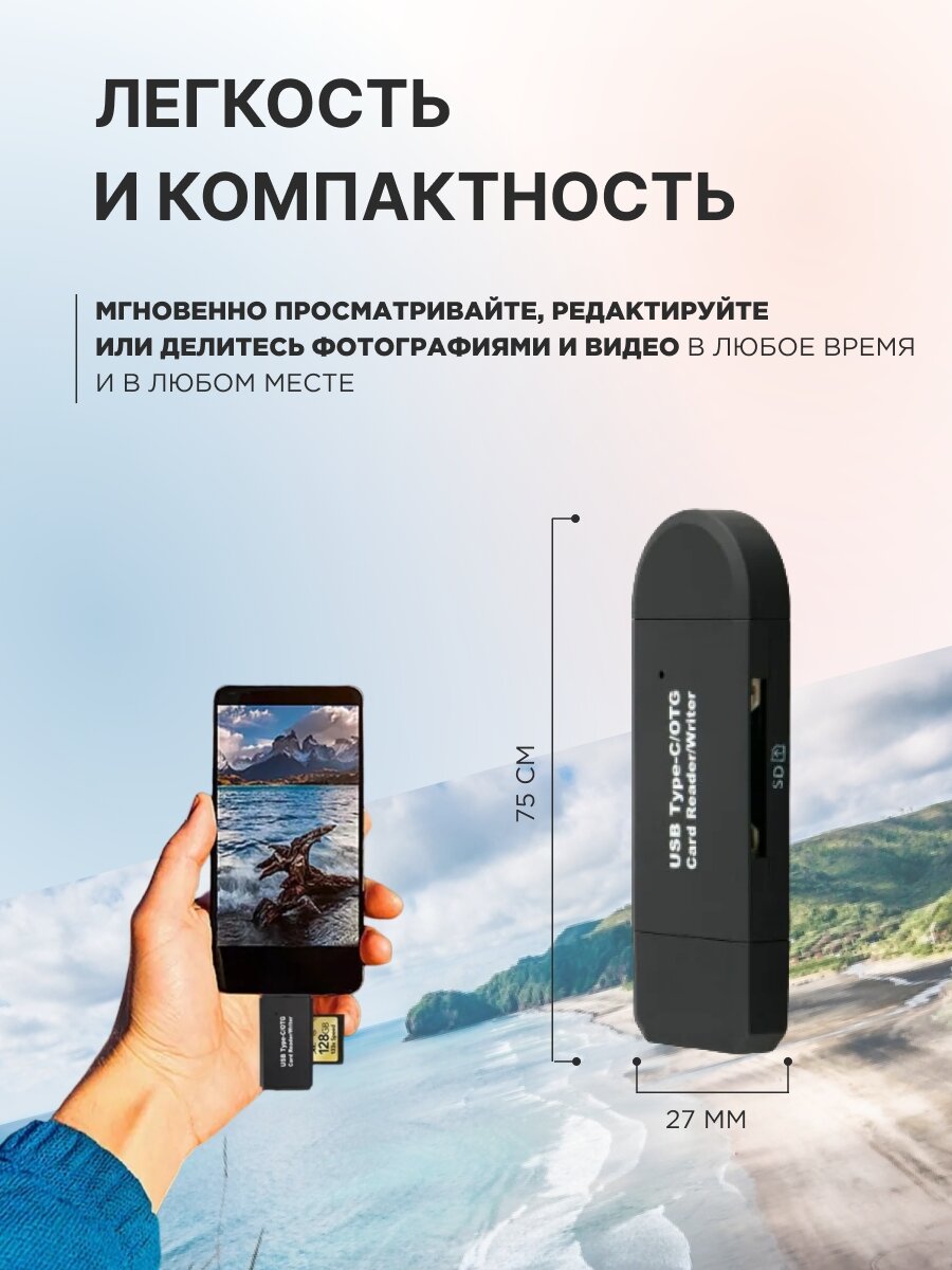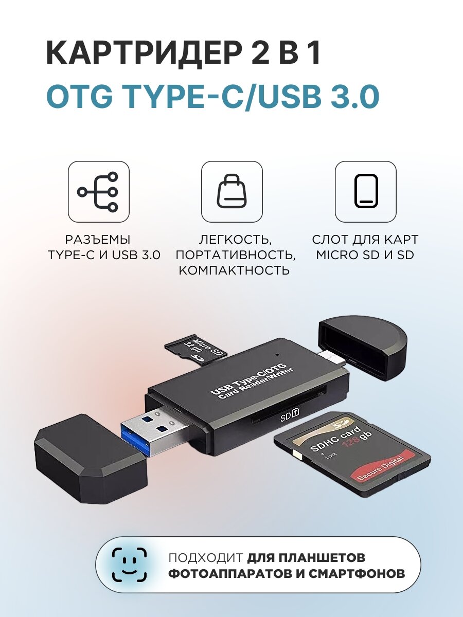 Картридер 2 в 1 OTG Type-C/USB 3.0 для карт micro-sd/SD интересное: