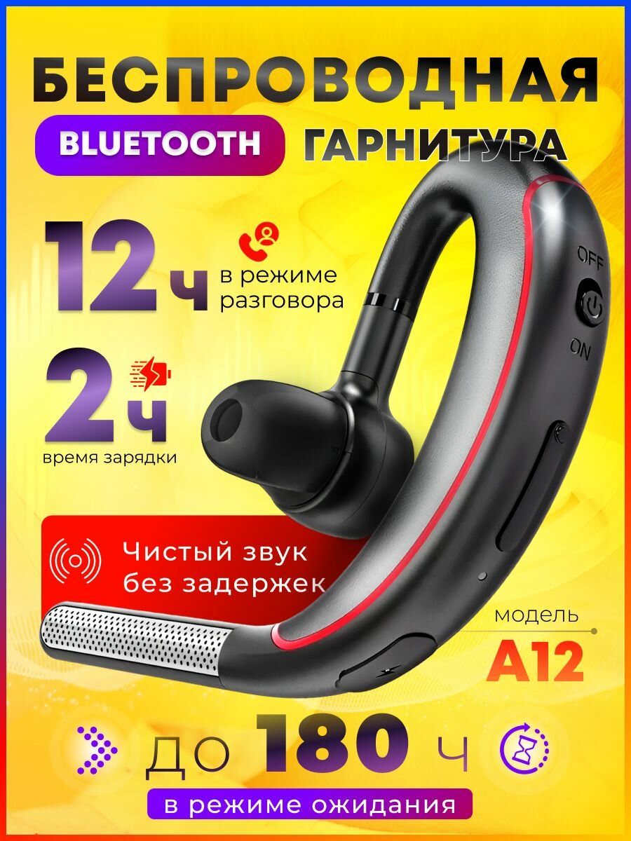 Купить Вuetooth гарнитура А12 Бизнес класса с микрофоном и шумоподавлением CVC8.0, 12 часов разговора, HD звук для 2х телефонов