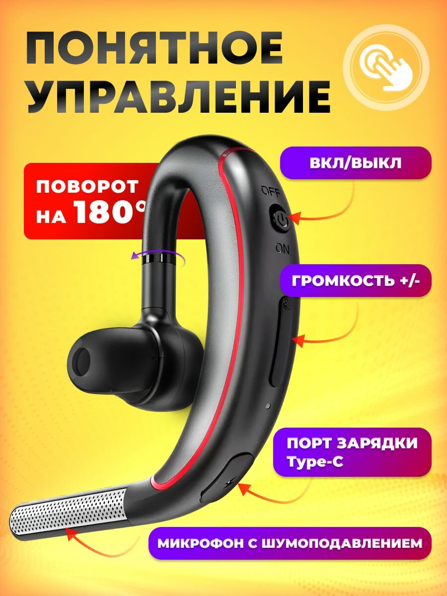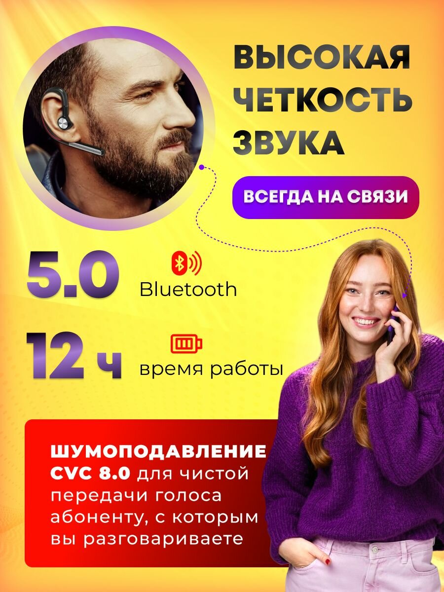 Вuetooth гарнитура А12 Бизнес класса с микрофоном и шумоподавлением CVC8.0, 12 часов разговора, HD звук для 2х телефонов интересное: