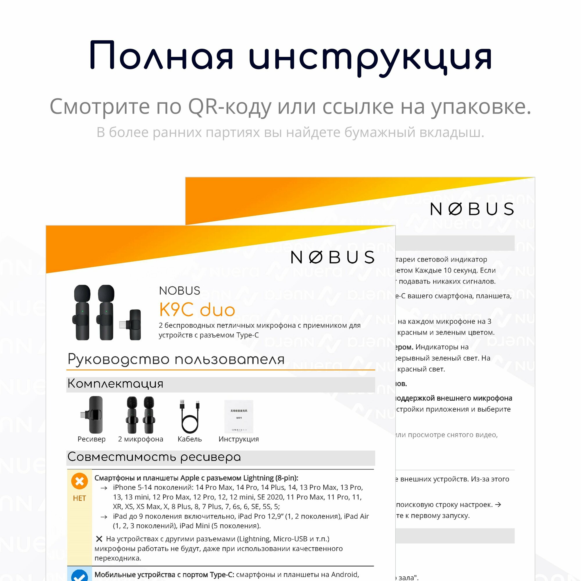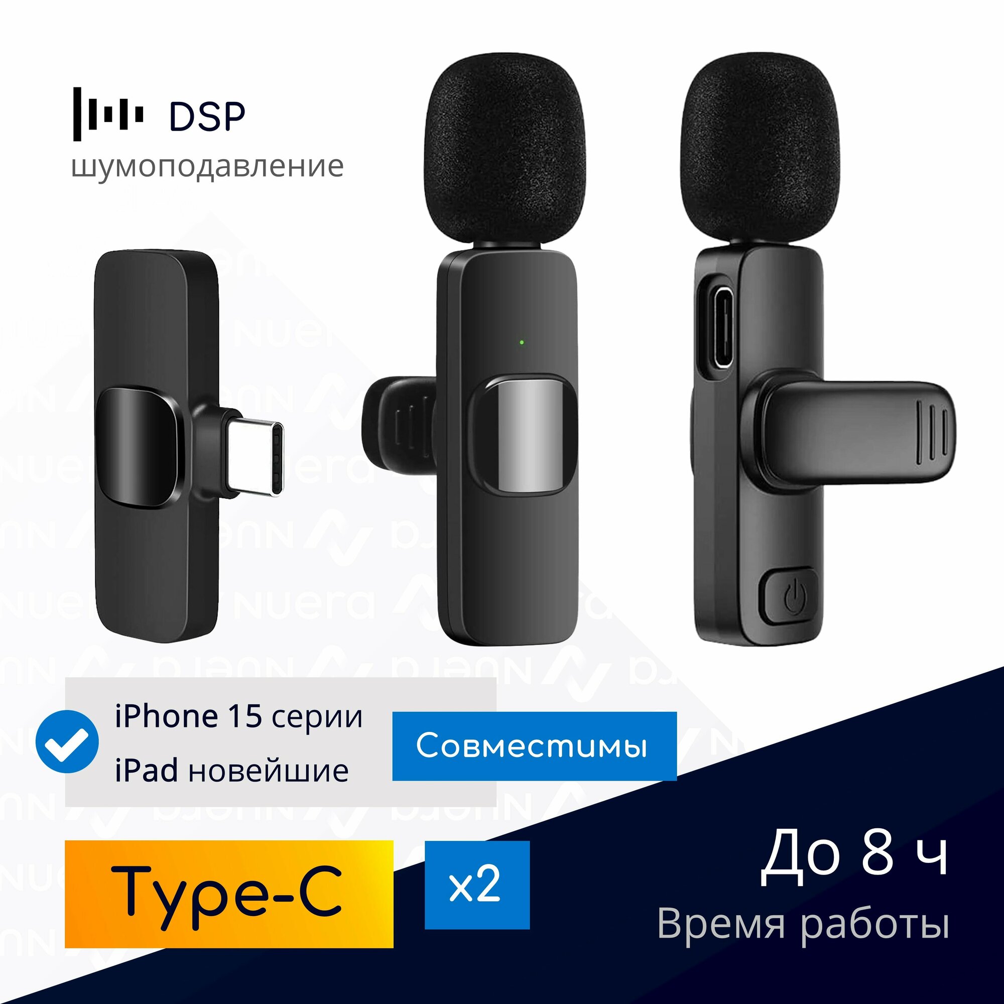 NOBUS K9C duo / 2 беспроводных петличных микрофона с шумоподавлением, Type-C / для смартфонов, планшетов, iPhone 15 и новейших iPad / комплект интересное: