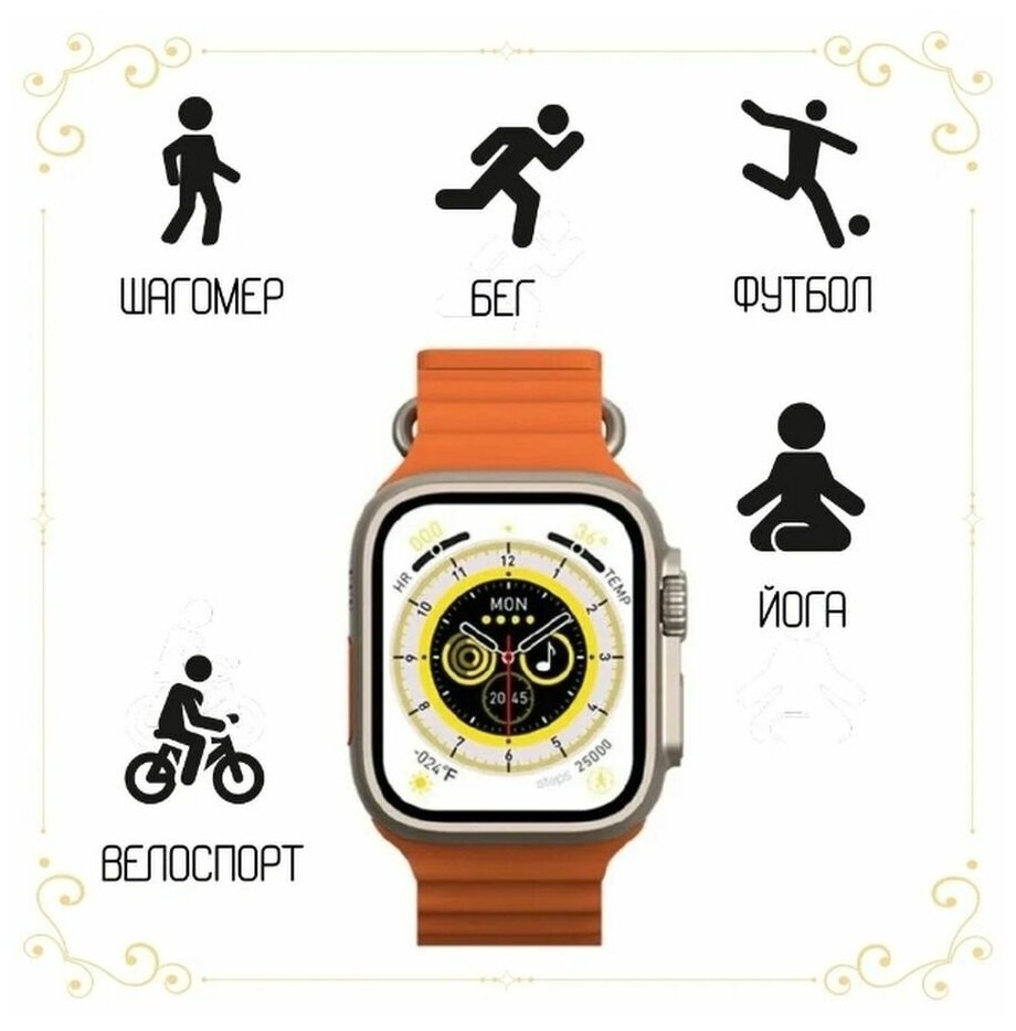 Умные смарт часы Smart X8+ Ultra Series 8 (цвет золотой) Bluetooth, звонок , температура тела, калькулятор, беспроводная зарядка. интересное: