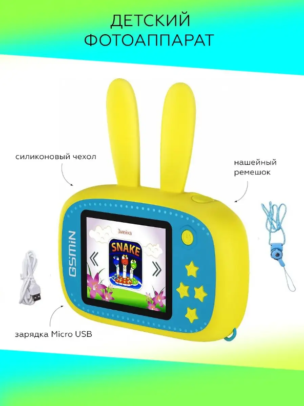 Детский развивающий цифровой фотоаппарат Зайчик, желтый интересное: