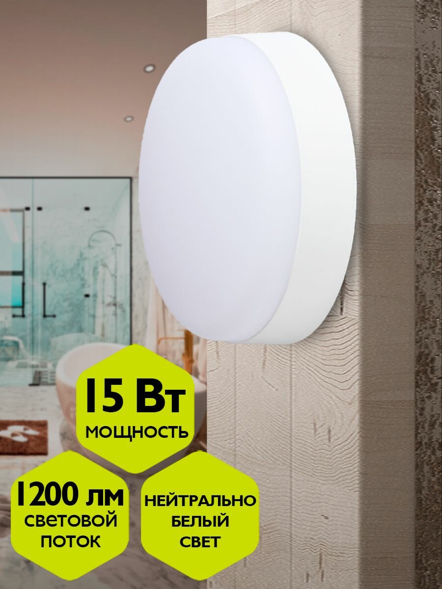 Cветильник настенно-потолочный Фаzа ДПО-1044 светодиодный, 4000К 15Вт IP54, 5033108 / освещение помещений
