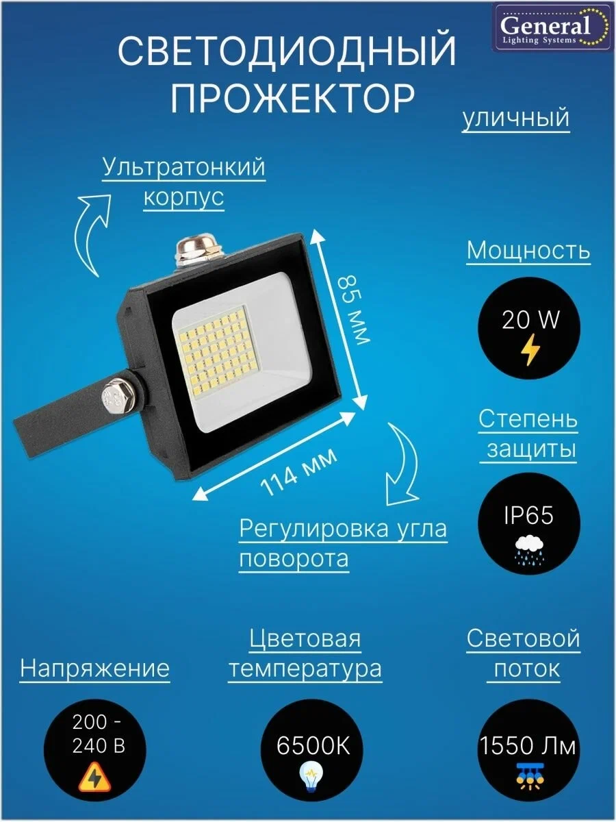Прожектор светодиодный GTAВ- 20-IP65-6500-IFR 20Вт General с ИК датчиком движения интересное: