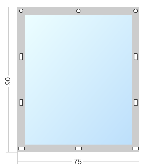 Мягкое окно Софтокна 75х70 см, Прозрачная пленка 0,7мм, Скоба-ремешок, Серая окантовка, Комплект для установки