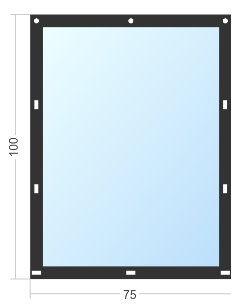 Мягкое окно Софтокна 75х70 см, Прозрачная пленка 0,7мм, Скоба-ремешок, Серая окантовка, Комплект для установки