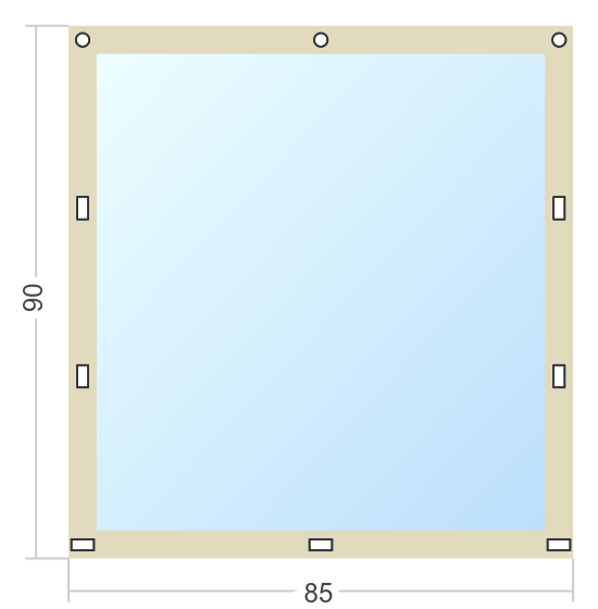 Мягкое окно Софтокна 85х70 см, Прозрачная пленка 0,7мм, Скоба-ремешок, Бежевая окантовка, Комплект для установки