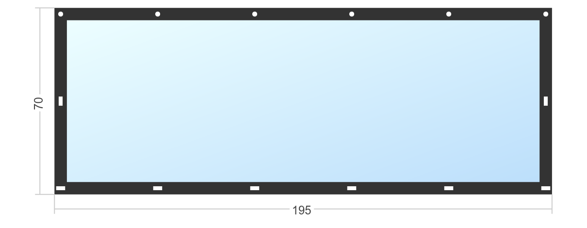Мягкое окно Софтокна 260х70 см, Прозрачная пленка 0,7мм, Скоба-ремешок, Серая окантовка, Комплект для установки