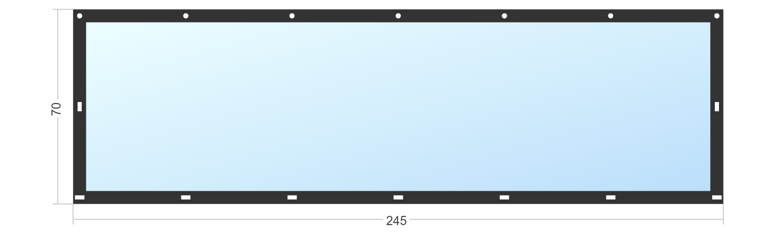 Мягкое окно Софтокна 245х70 см, Прозрачная пленка 0,7мм, Скоба-ремешок, Белая окантовка, Комплект для установки
