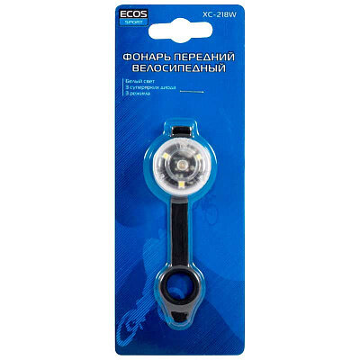 Фонарь ECOS XC-218W, передний, LED, 3 режима, влагозащищенный, батарейки