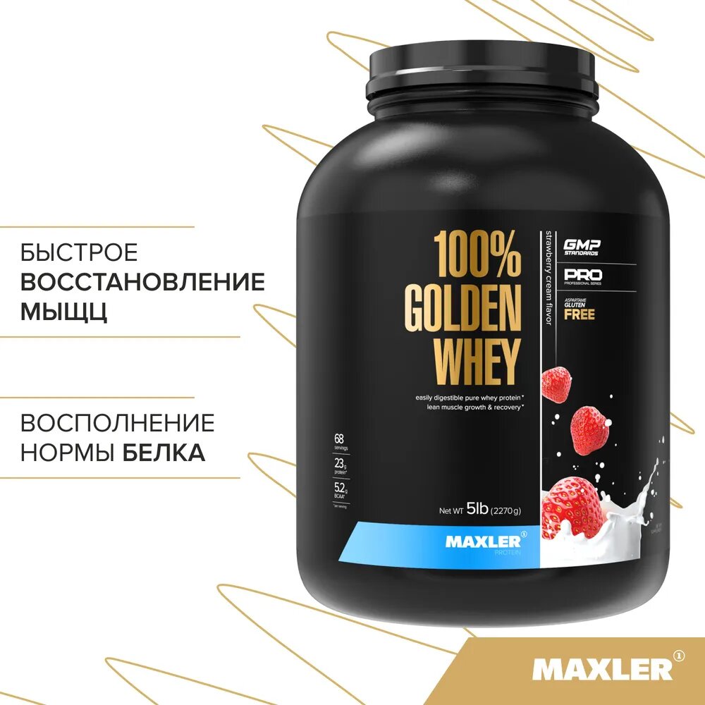 Купить Сывороточный протеин Maxler 100% Golden Whey со вкусом клубничный крем, 2270г, Рост мышечной массы, Восстановление, BCAA