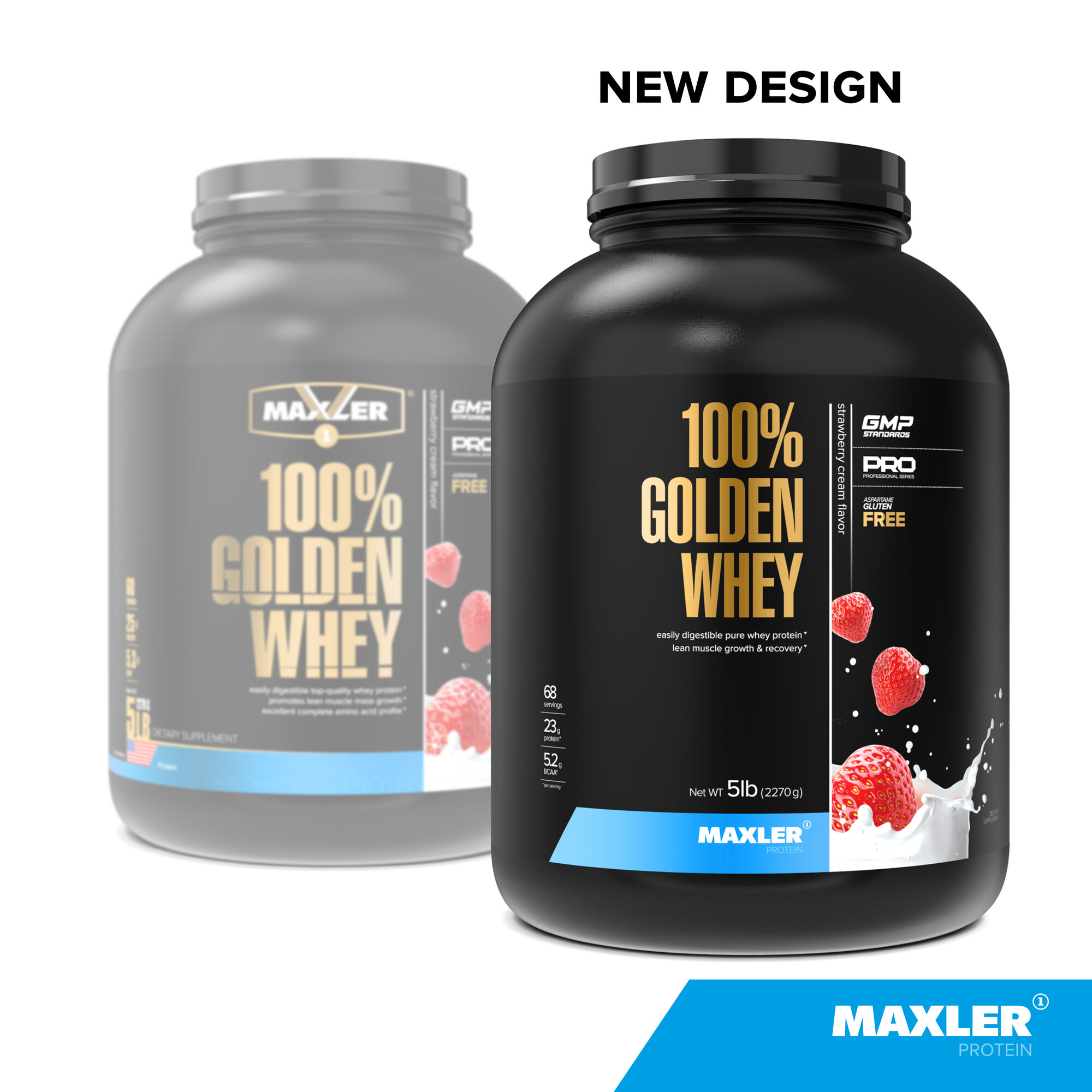 MAXLER USA Golden Whey 2,27 кг большая банка (Strawberry-Banana)