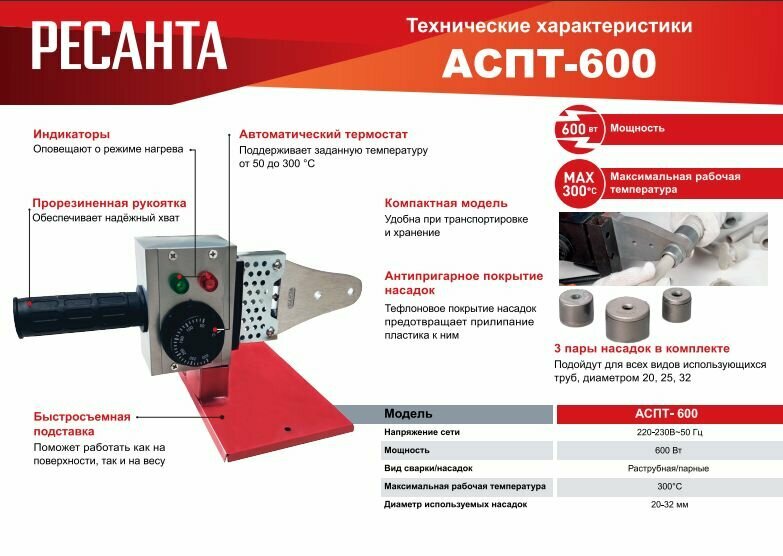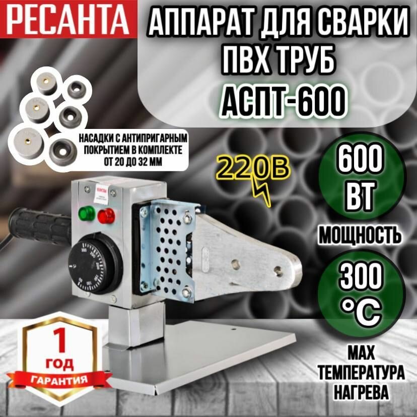 Аппарат для сварки ПВХ труб Ресанта АСПТ-600 65/121 интересное: