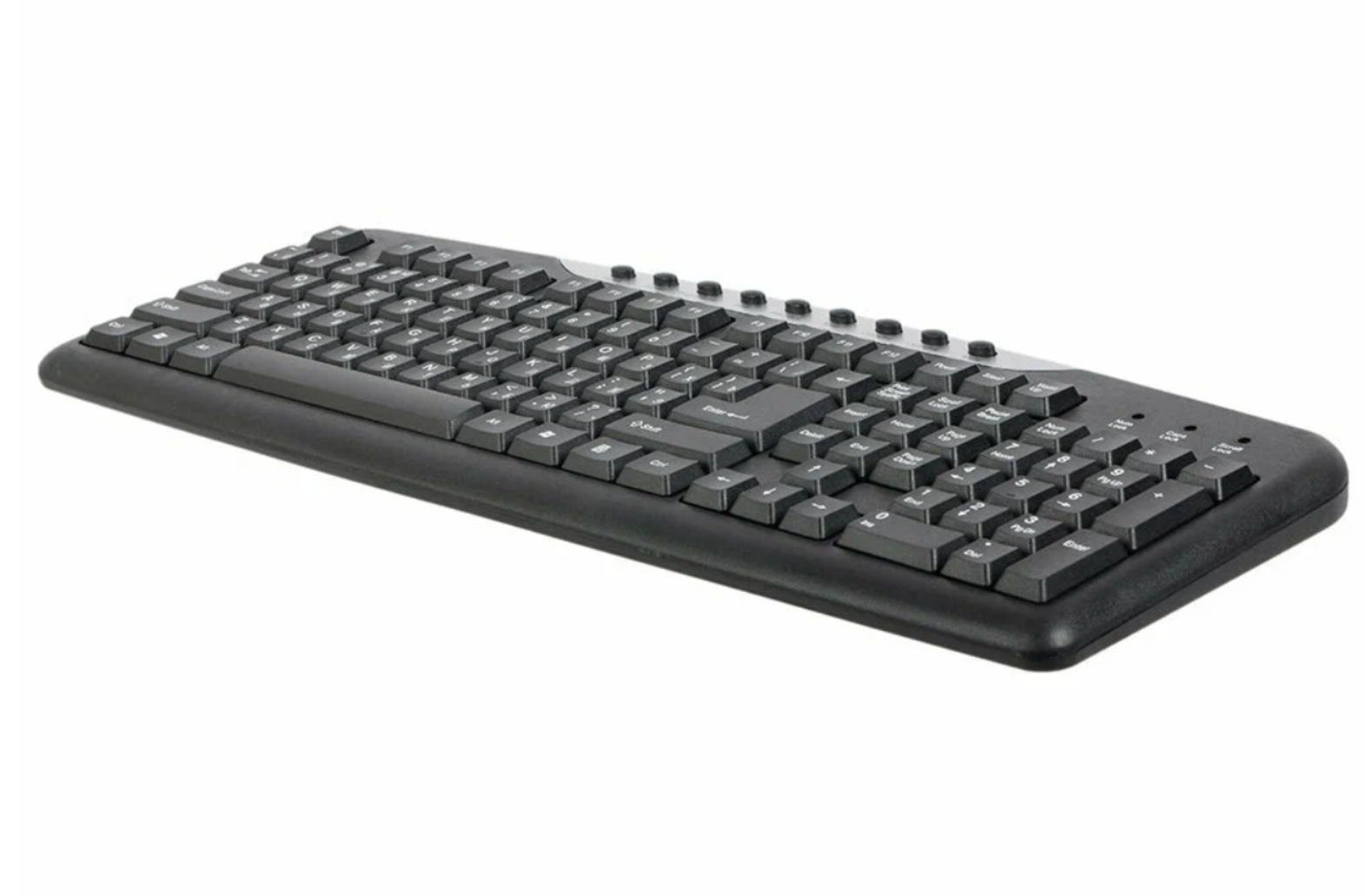Первый испуг, что не работает часть клавиш, впоследствии был устранён: заметил, что если жать на клавишу с достаточным усилием (с полкило -- или, чтоб наверняка, с остервенением), то она -- ура!! -- срабатывает. Ах, да: малошумная и от кнопок не так -- как на купленной мной взамен, например -- отражается свет (блики) настольной лампы. И есть кнопки управления питанием (из-за чего, собственно, выбрал). |