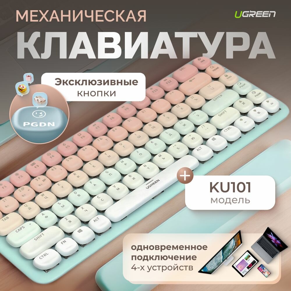 Клавиатура механическая UGREEN KU101 (15227) FUN + Mechanical Keyboard USB-C & Bluetooth мятная/розовая