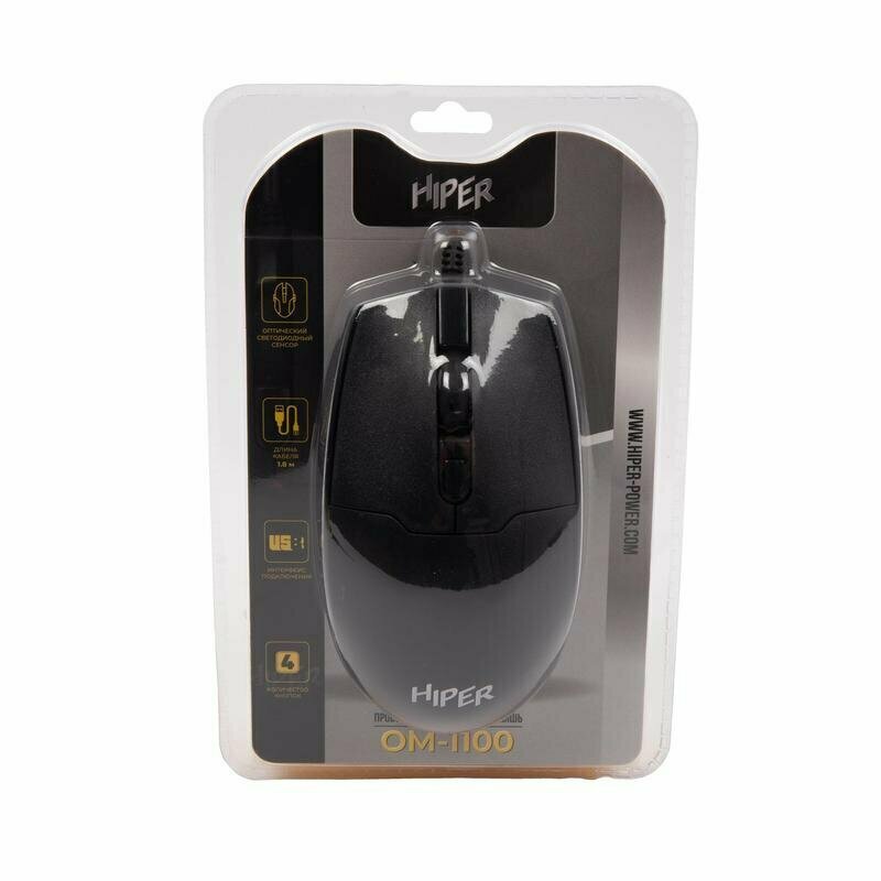 Мышь проводная Hiper OM-1100 черная, 1659903