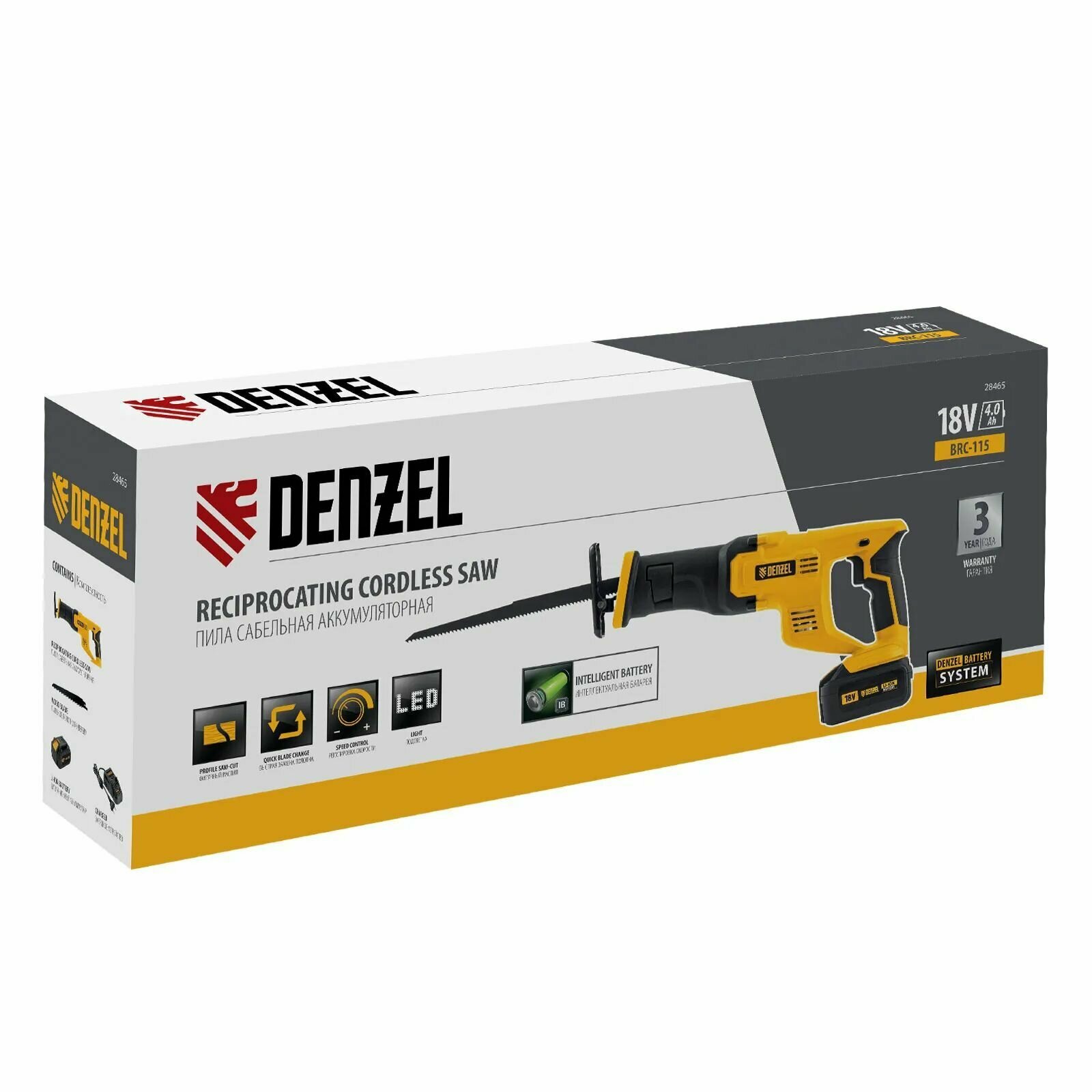 Пила сабельная аккумуляторная Denzel Crc-115, 18В Li-Ion 28465 .