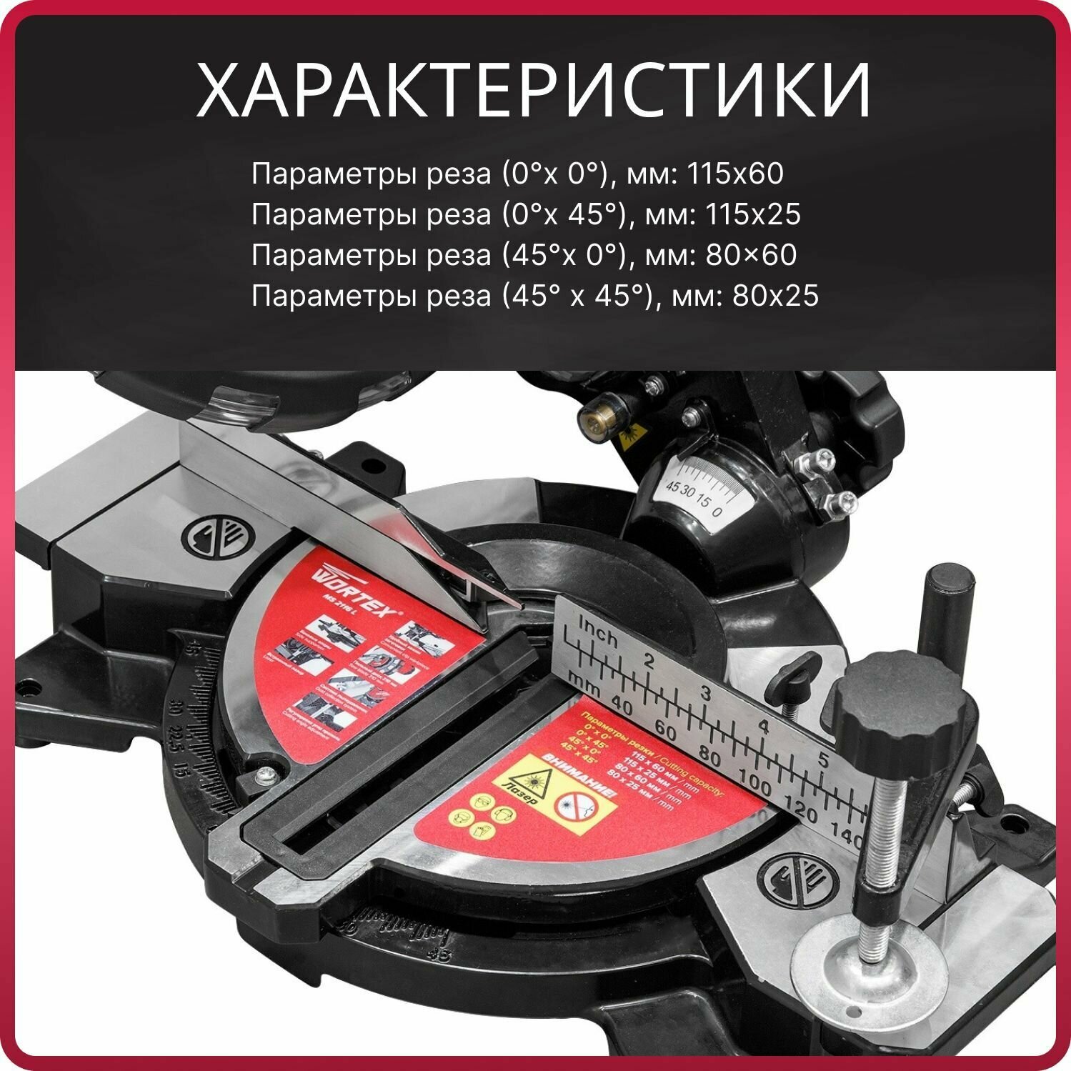 Пила торцовочная WORTEX MS 2116 L 1500 Вт, 210х30мм, до 60мм, лазер, 7.5кг 0329124 интересное: