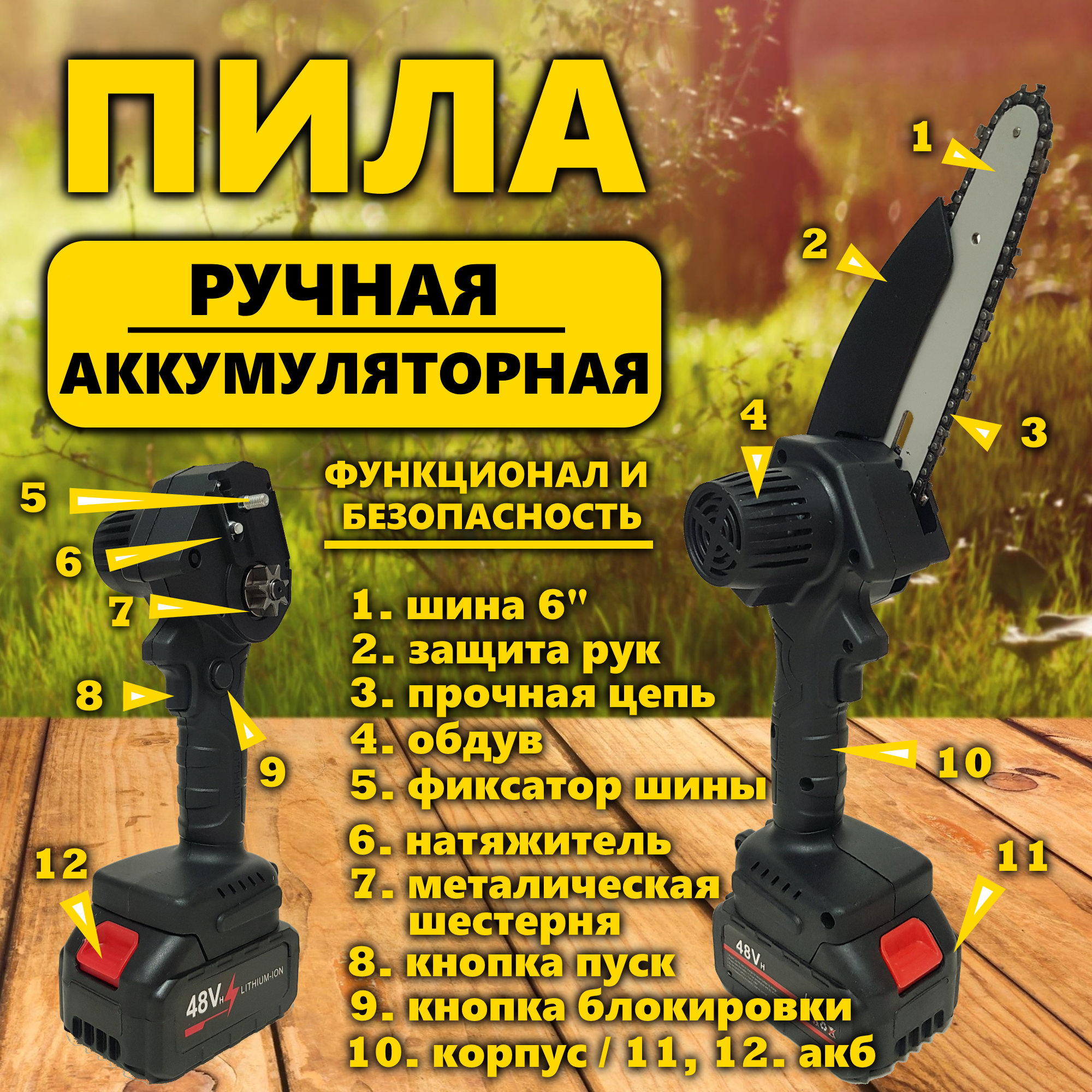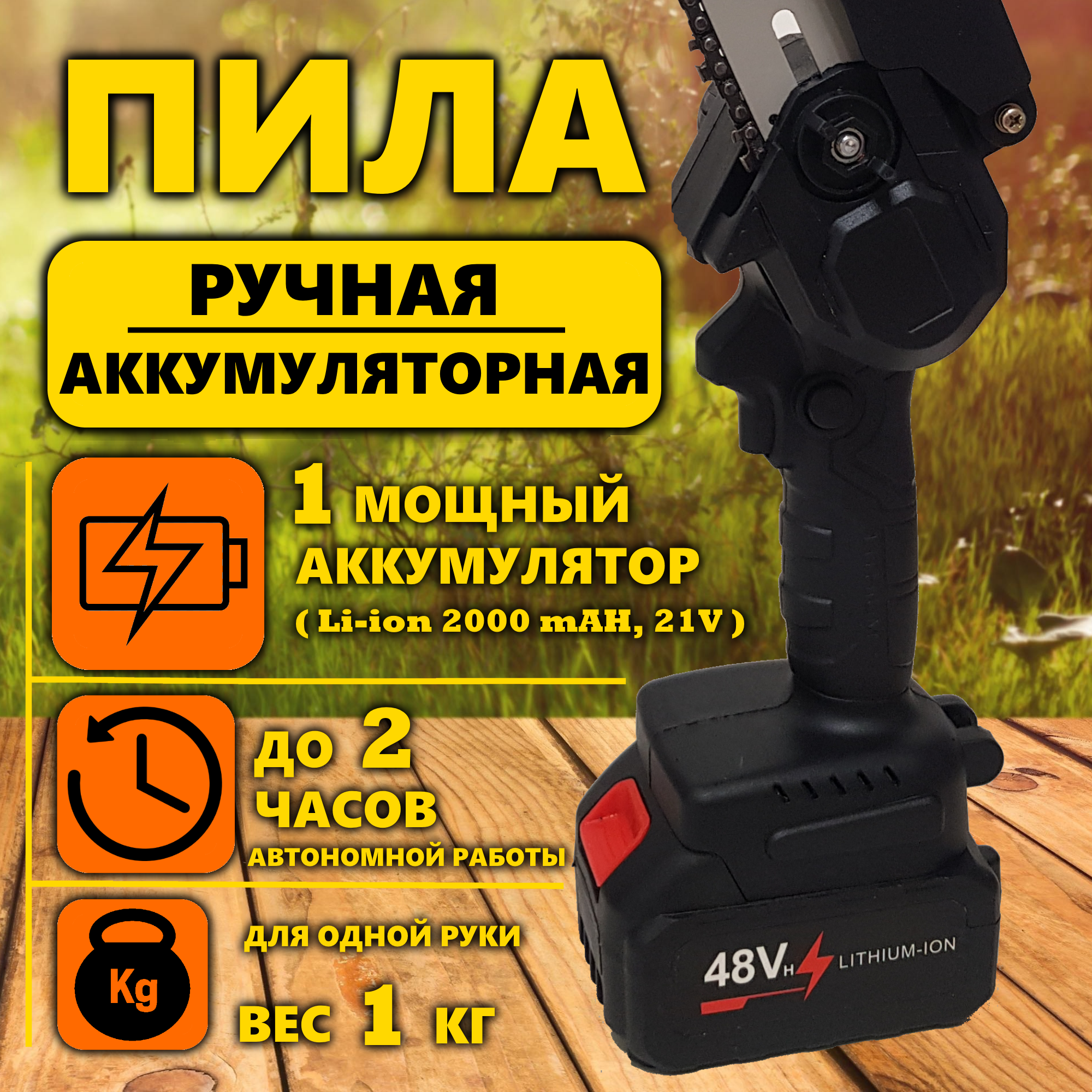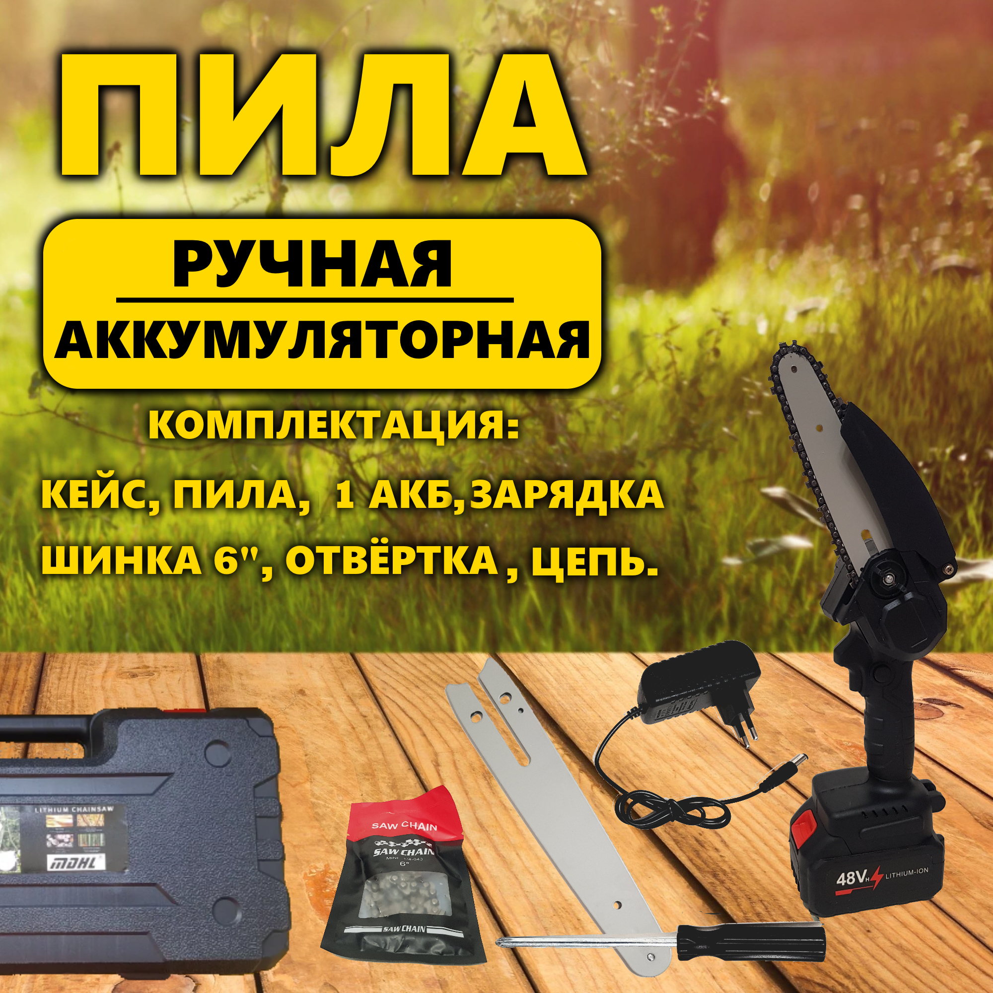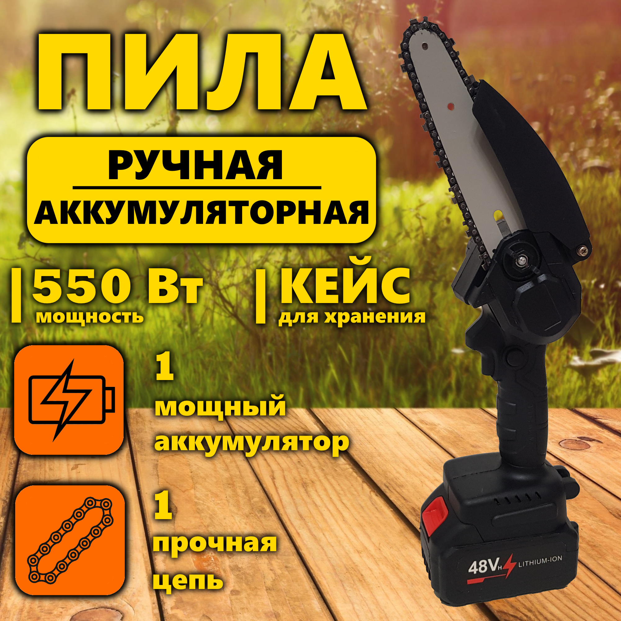 Электропила; Аккумуляторная цепная пила; 48Vh (21 вольт), в кейсе интересное: