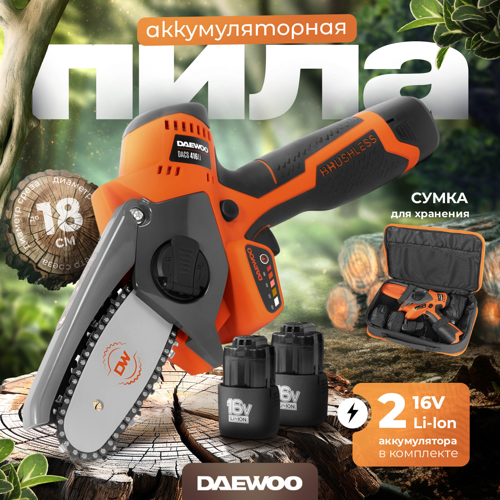 Аккумуляторная пила цепная DAEWOO DACS 416Li SET c АКБ и ЗУ