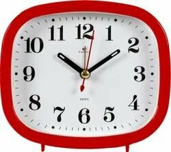 Будильник настольный Рубин Классика корпус красный пластик минеральное стекло работа от пальчиковой батарейки АА ширина 12.5 см высота 10.5 см