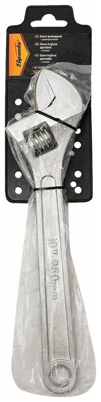 Ключ разводной Sparta 250 мм, хромированный, из углеродистой стали, 155305