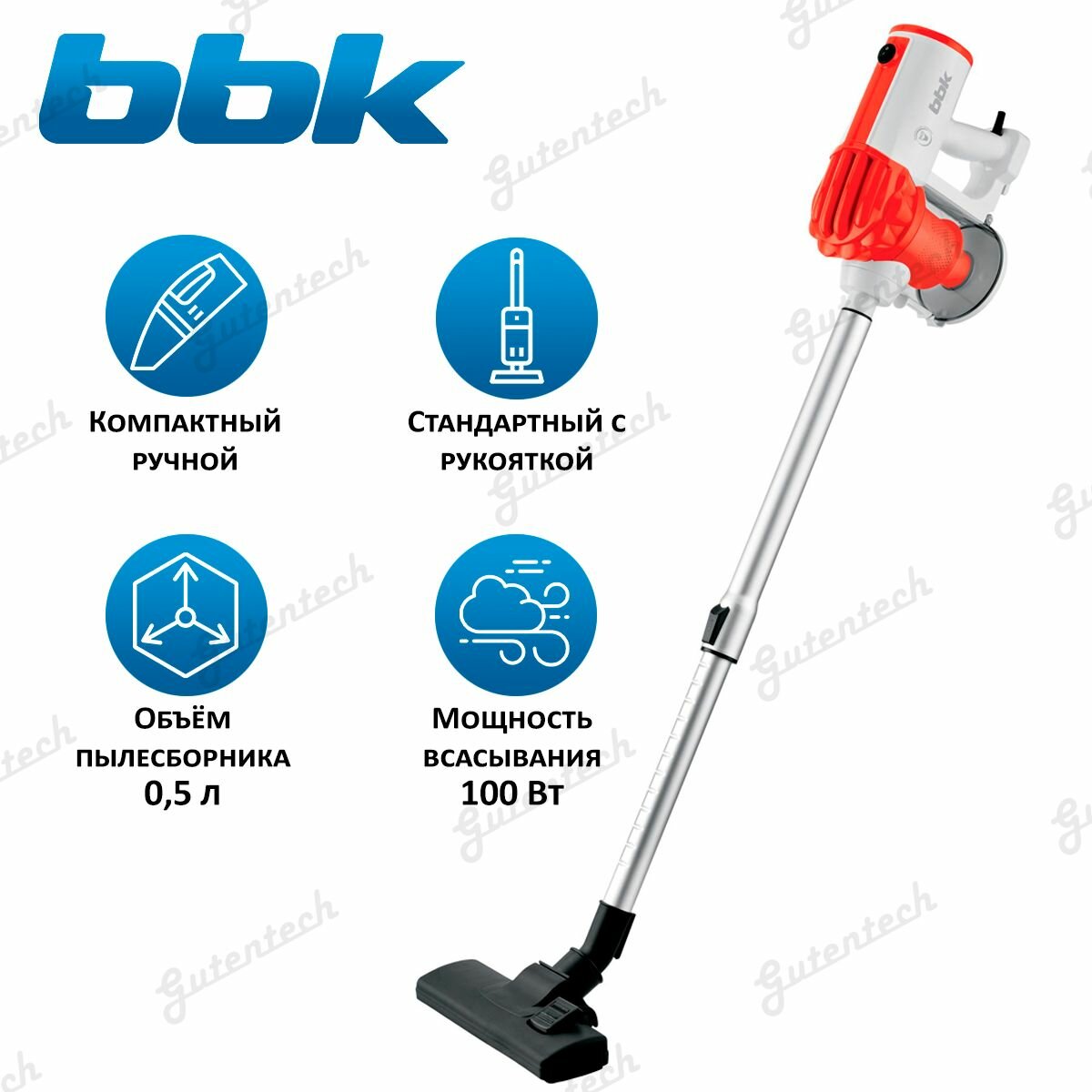 Пылесос вертикальный BBK BV2512 600 Вт Цвет Белый/Красный BBK BV2512WTRD