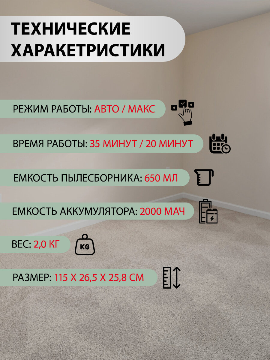 | Дополнительные функции | подсветка зоны уборки / управление мощностью на рукоятке |