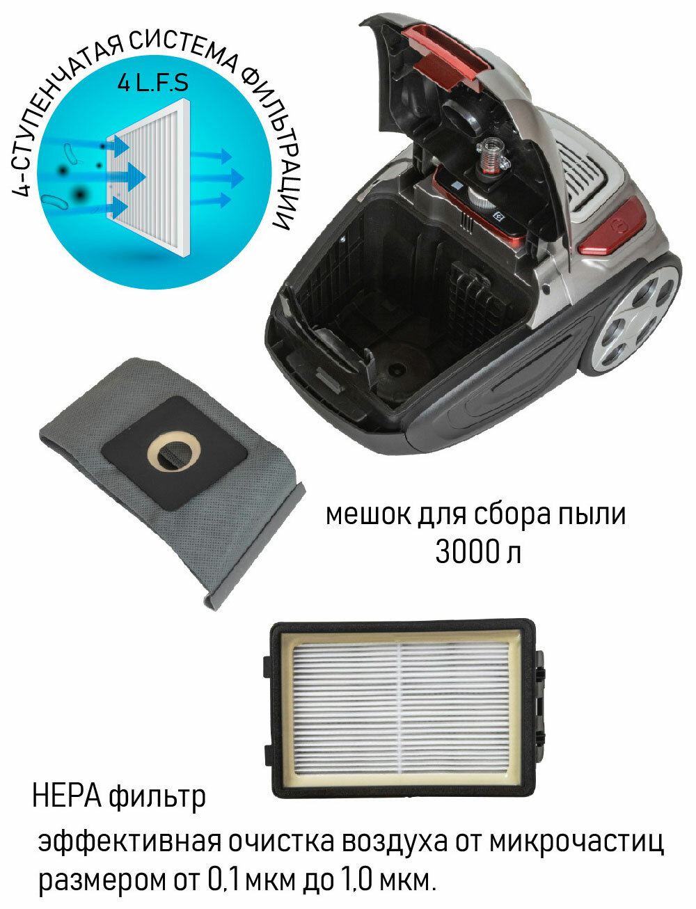 | В комплекте | универсальная насадка для сухой уборки, щелевая насадка |