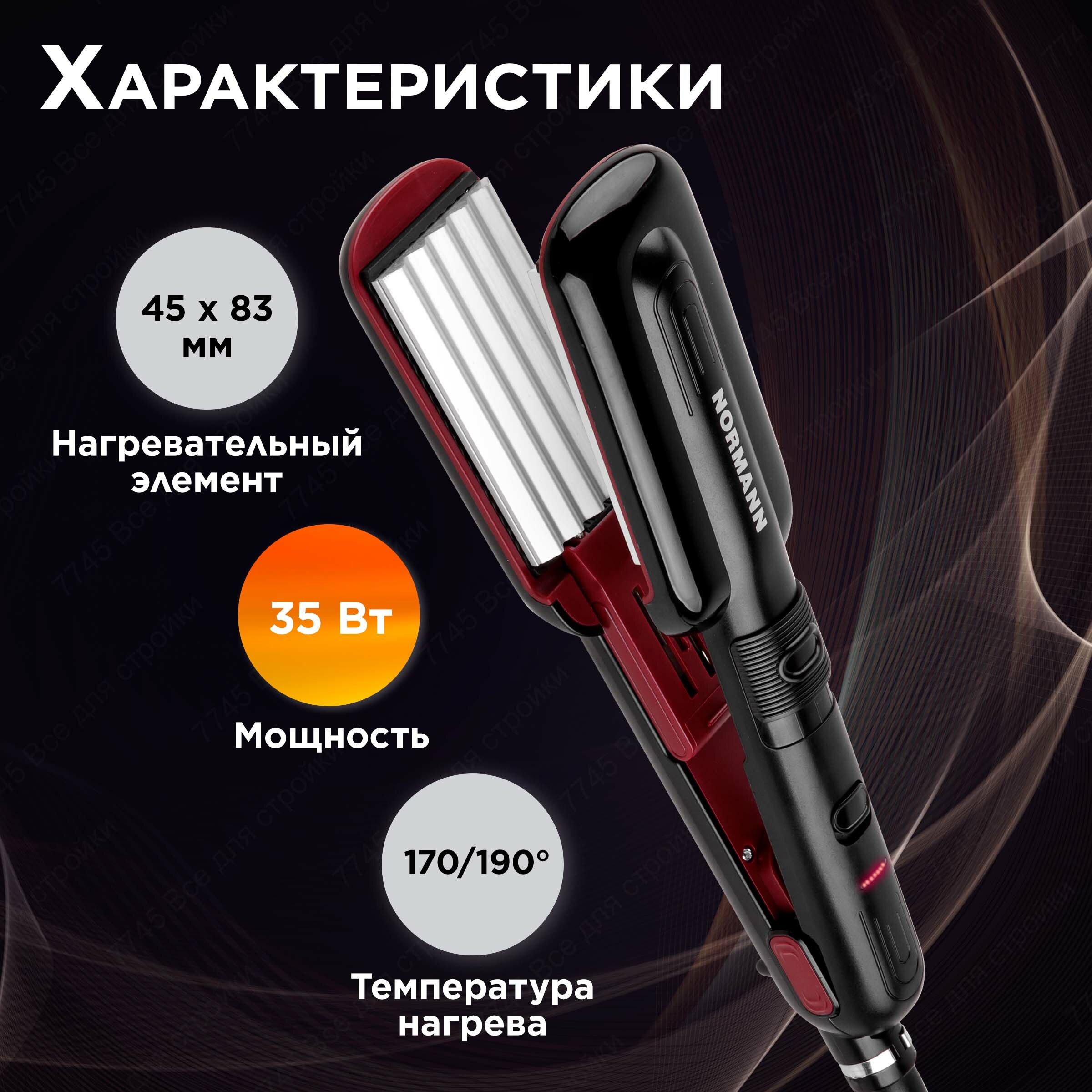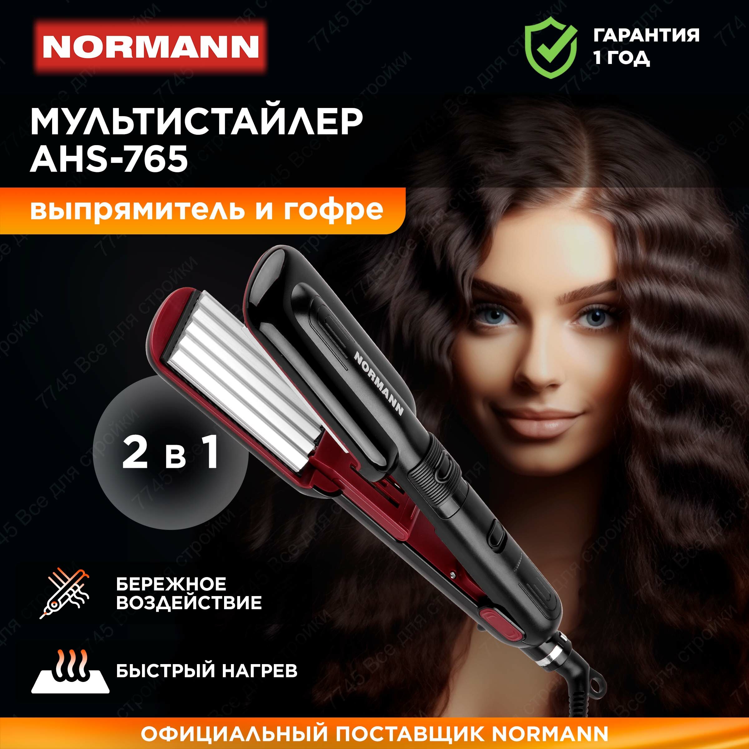 Мультистайлер для волос 2 в 1 NORMANN AHS-765 (2 в 1, 35 Вт, 170/190°С, шнур 360°) интересное: