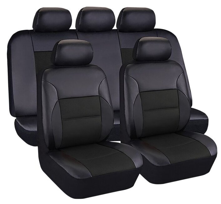 Чехлы универсальные на автомобильные сиденья, комплект "LUXURY", экокожа, черные