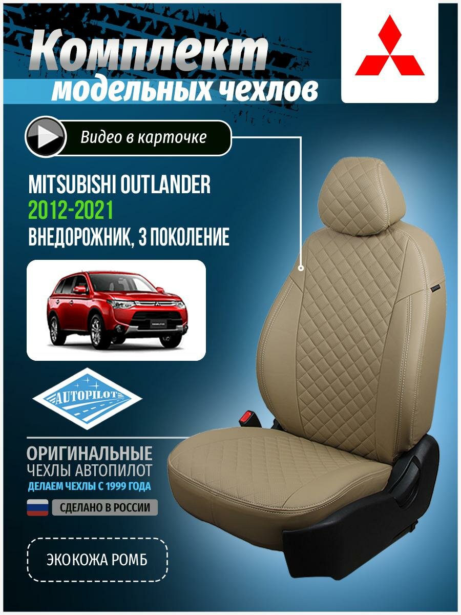 Чехлы для Mitsubishi Outlander 3 2012-2020 Автопилот Бежевый Экокожа с ромбом mi-ou-o3-chebe-r